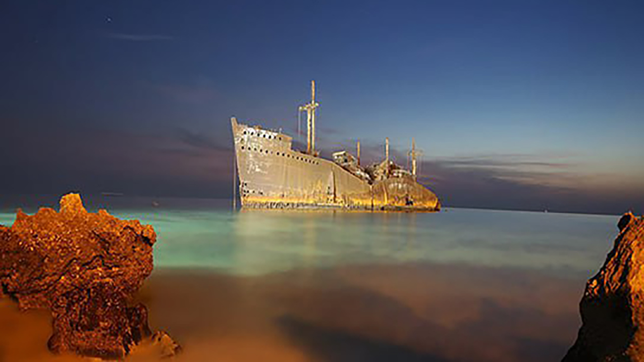 Kiş adasının qərb sahillərində yerləşən Yunan gəmisi gün batımı anlarında adanın ən gözəl mənzərələrindən birini yaradır.
